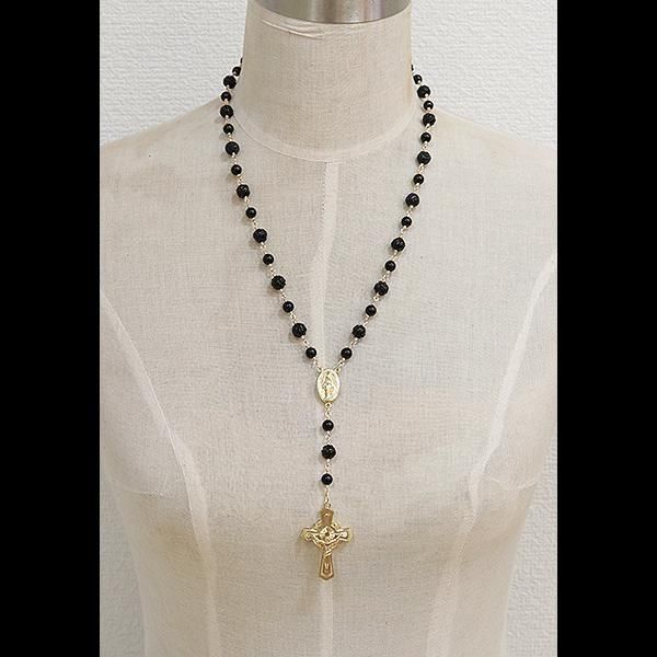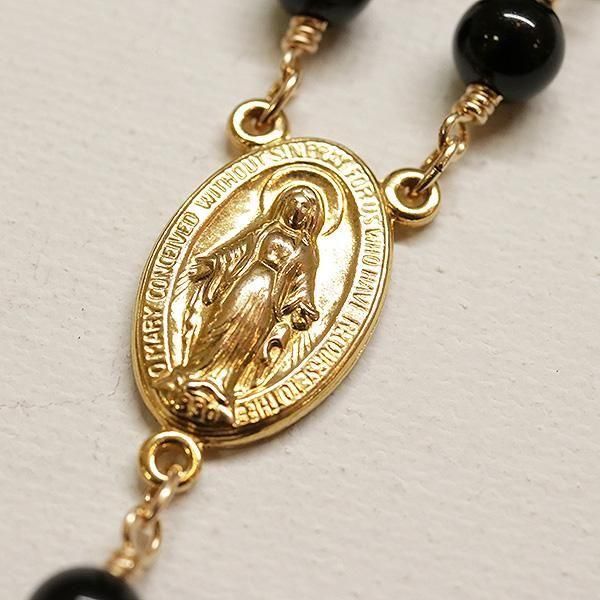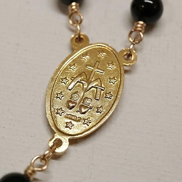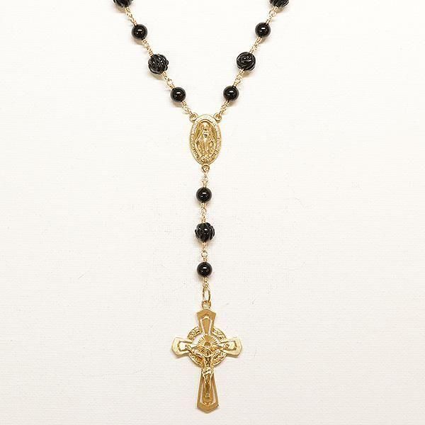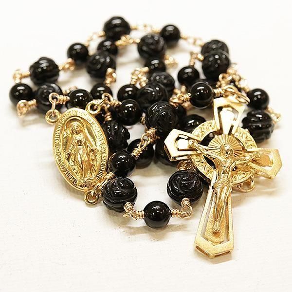 U様 オーダーメイド オニキス・薔薇彫りオニキス 聖母マリアのロザリオネックレス
