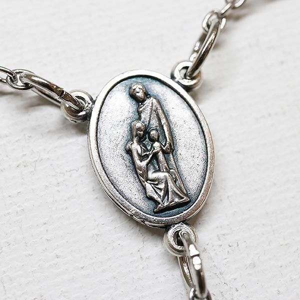 丸太の十字架と聖家族(裏は聖霊・鳩)のセンターメダイに