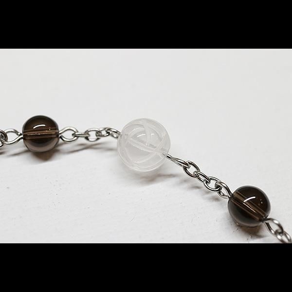 ●使用ビーズ:スモーキークォーツ6mm、薔薇彫りミルキークォーツ8mm