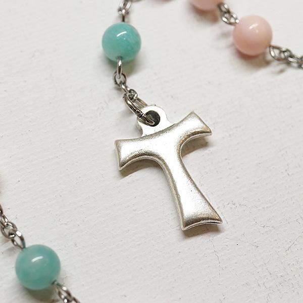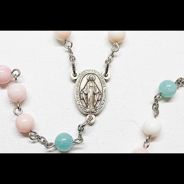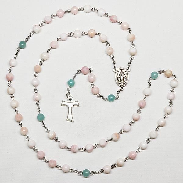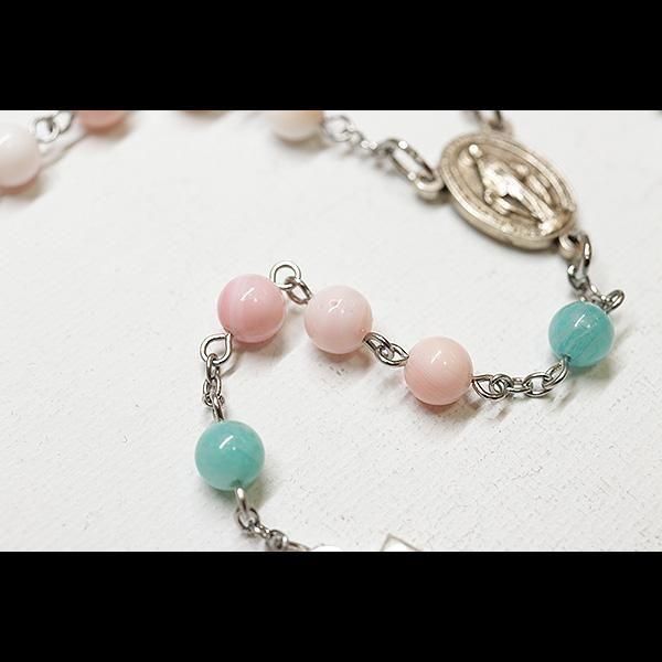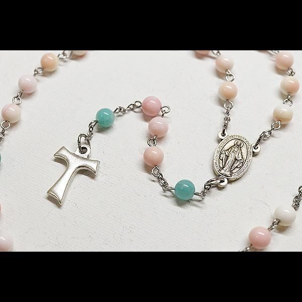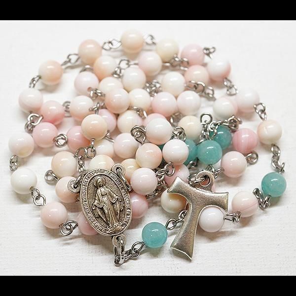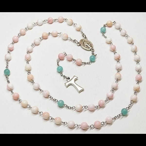 クィーンコンクシェルとアマゾナイトを合わせたロザリオです。